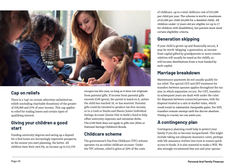 If your child is grown up and financially secure, it may be worth ‘skipping’ a generation, as income from capital gifted by grandparents or more remote relatives will usually be taxed as the child’s, as